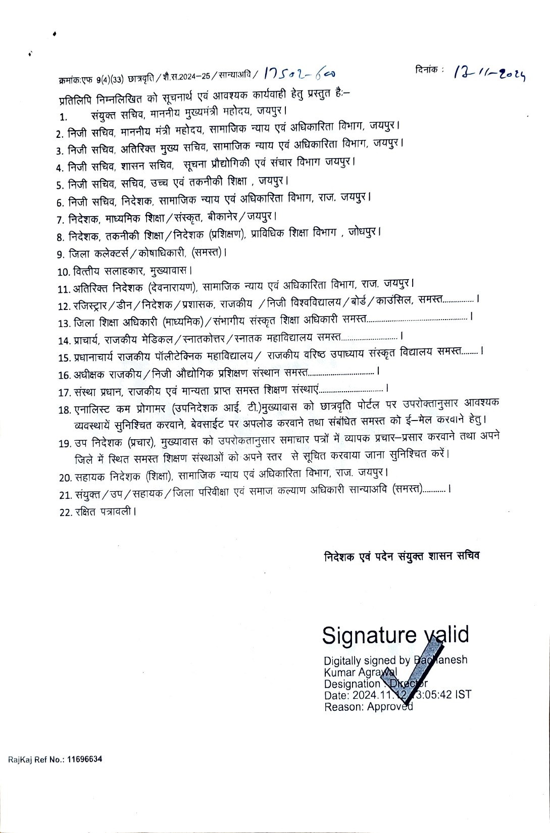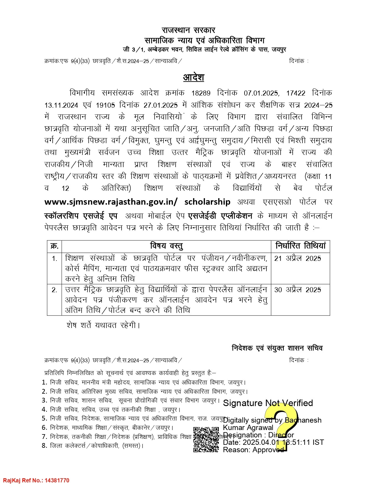 छात्रवृत्ति एवं स्कूटी योजना हेतु आवेदन तिथि अनुसूची