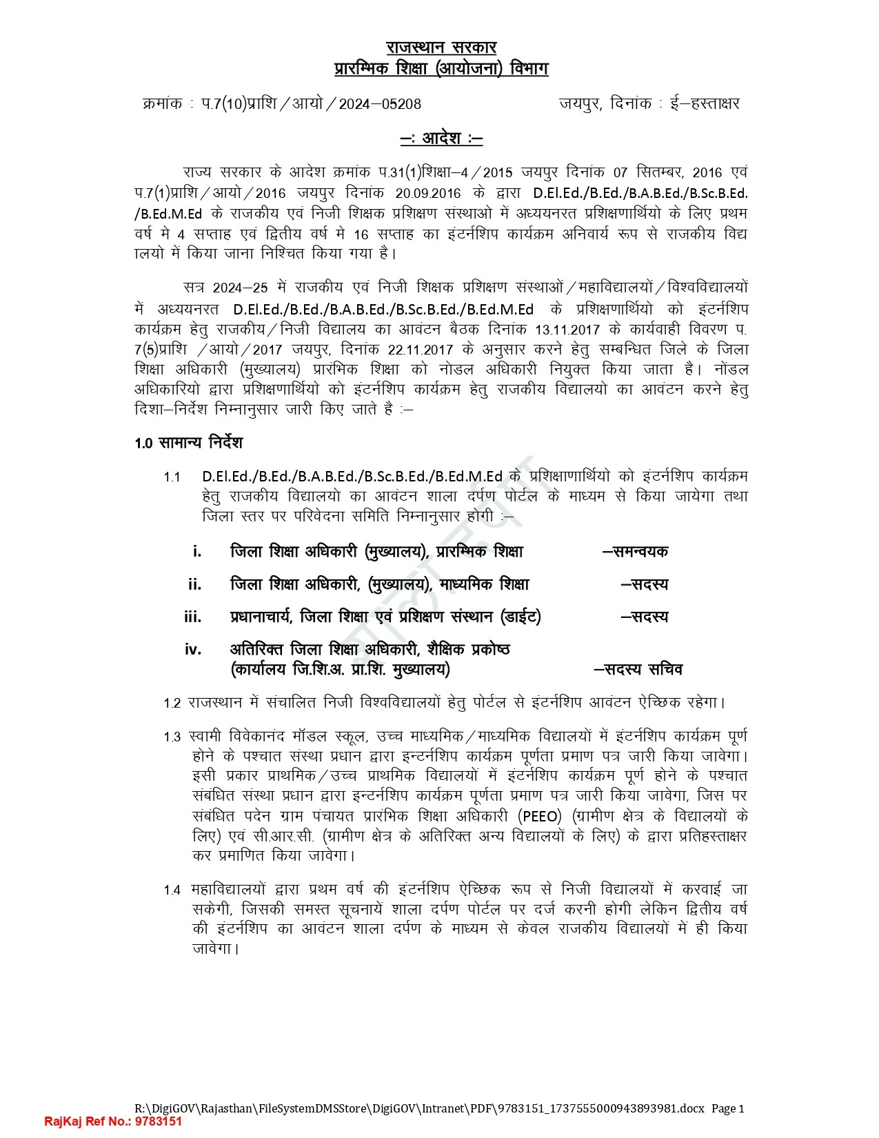 Rajasthan University issue the order to conduct the internal/ Practical examination of B.Ed. 2nd Year up to 31-10-2020
