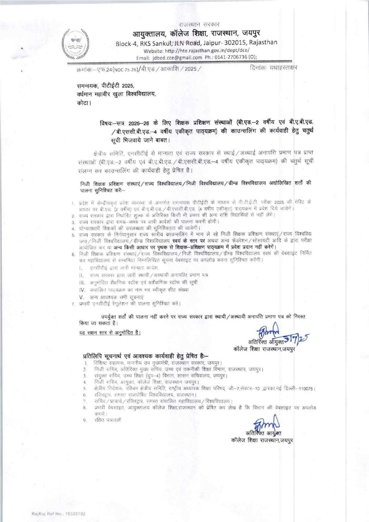 The Copy of NOC Orders are as follows:-